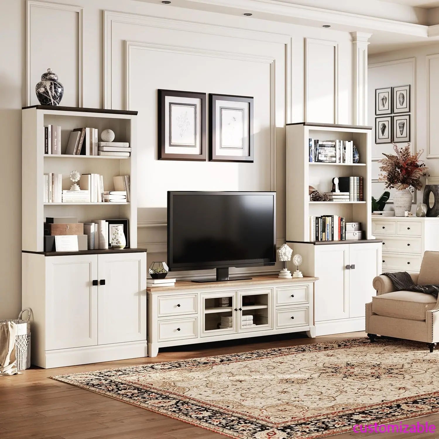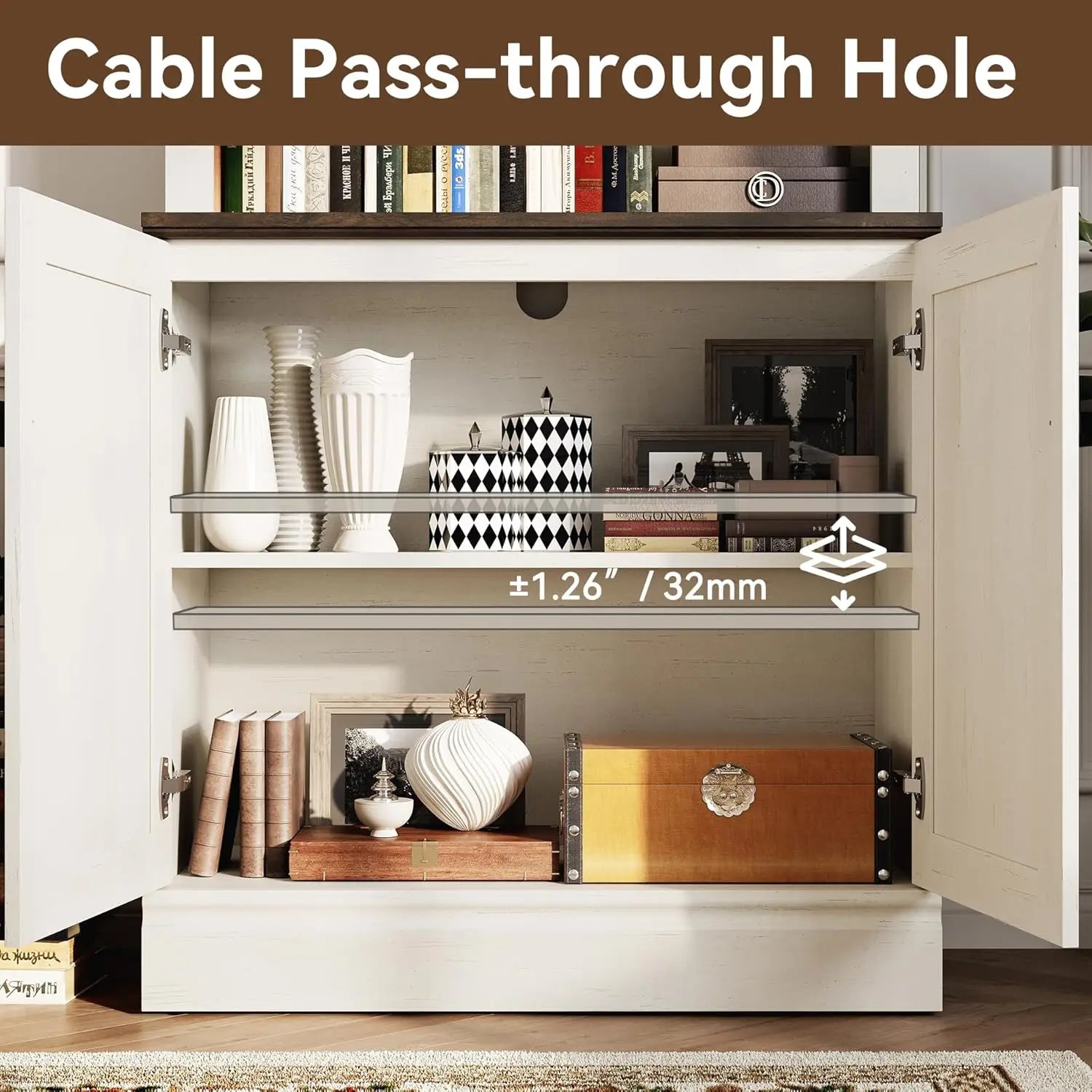 - Elegant finish: Antique white, painted look with a double-line pattern on the cabinet doors delivers a rustic modern aesthetic that complements living rooms, bedrooms, and home offices.