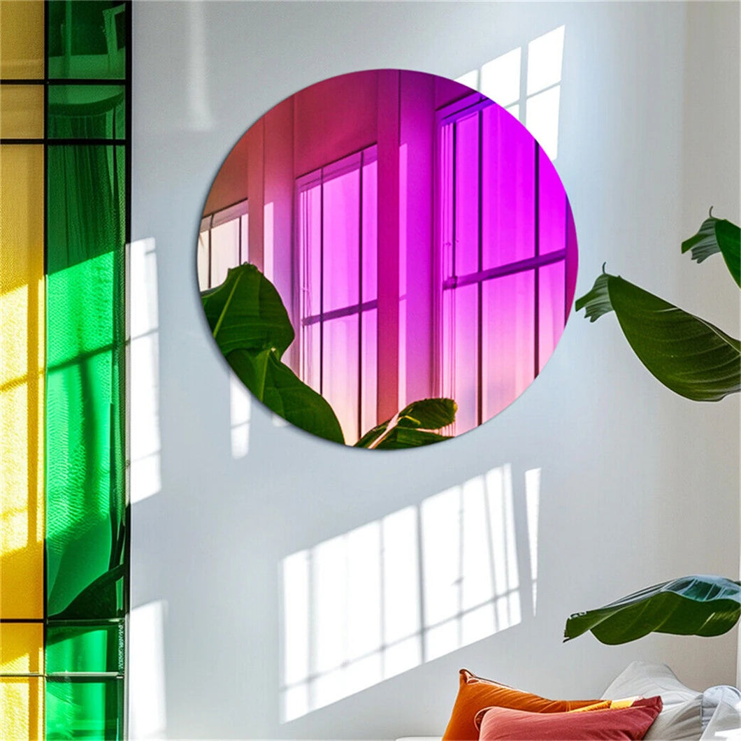 Elevate your walls with the BORWARTH iridescent round wall mirror, turning light into a living spectrum of color.